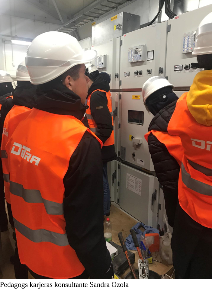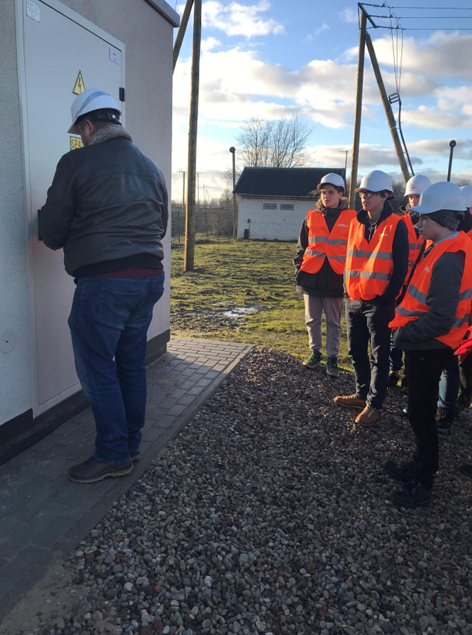 SIA “Ditra Networks” nodaļas vadītāja Jura Grigorjeva pavadībā audzēkņi varēja apskatīt jaunizbūvētās 110/20kV iekārtas un gūt plašāku ieskatu par enerģētiku. Iegūt informāciju par jaunākajiem materiāliem un ražošanas tehnoloģijām. Audzēkņiem bija iespēja redzēt 20kV iekštipa apkalpošanas sadales punktu, 110kV ārtipa sadales ietaisi, 20kV iekštipa sadales ietaisi un 20kV zemesslēguma kompensācijas iekārtas. A/st. Nr.52 “Skrunda” tiek būvēta no jauna kā “H” veida apakšstacija, jo augsprieguma līnijas izkārtotas burta H formā.
